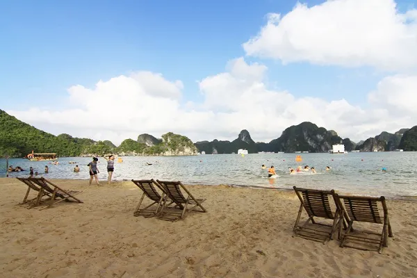 16h30: Our cruise will take you to the Titov Island, It is noted for having a viewpoint at its peak which affords splendid views all around Halong Bay. Or you can enjoy your swimming on romance Sandy beach.